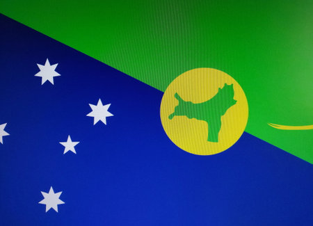 Top view of official retro flag Christmas Island with grunge texture. patriot and travel concept. no flagpole. Plane design, layout. Flag background