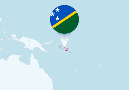 Oceania with selected Solomon Islands map and Solomon Islands flag icon. Vector map and flag.