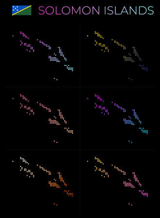Solomon Islands dotted map set. Map of Solomon Islands in dotted style. Borders of the country filled with beautiful smooth gradient circles. Cool vector illustration.