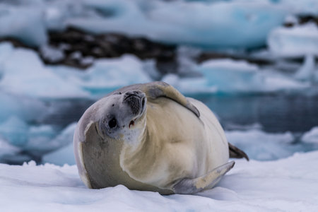 Antarctic weddell seal resting on ice floe