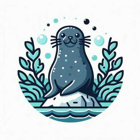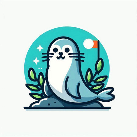 Cute seal with a flag. Vector illustration in flat style.
