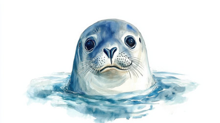 a seal looks out of the water