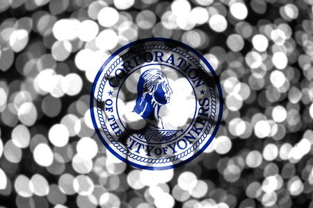 Yonkers, New York abstract blurry bokeh flag. Christmas, New Year and National day concept flag. United States of America.