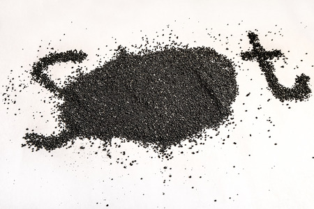 In a pile of handwritten words salt scattered on the black background with a salt shaker lying next to it.