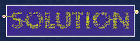 Concept of overcoming the crisis, an icon in the form of a solution path, brainstorming of a creative idea, innovation and solutions. The word solution in the maze, vector illustration.