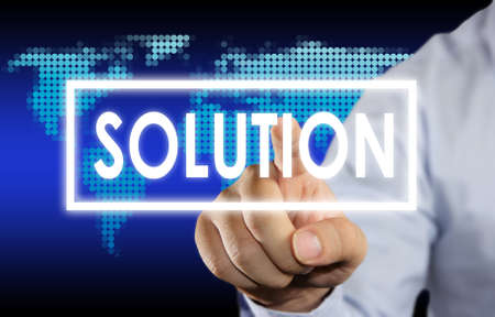 SOLUTION ( Solution Innovation Progress Strategy Decision ) businessman work on white broad, top view