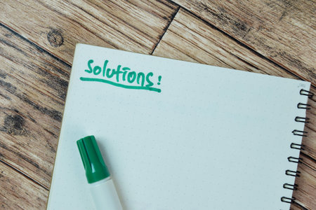 An AI generated illustration of a notebook resting on a wooden background with the message problem solution success