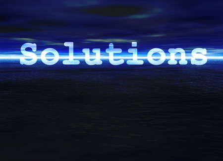 Solutions Text on Stunning Blue Bright Ocean Sea Horizon at Night