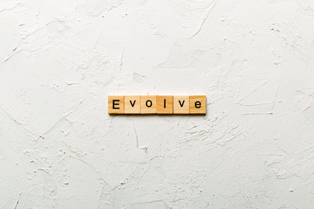 EVOLVE word written on wood block. EVOLVE text on cement table for your design, concept.