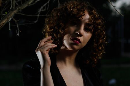 portrait of a beautiful red-haired girl. Close. Plump lips.
