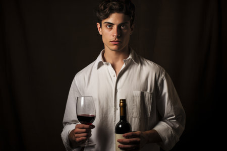 Sommeliers Hold Glass, Red Wine Tasting, Degustation Card, Male Sommeliers Drinks Wine, Restaurant Expert, Generative AI Illustration