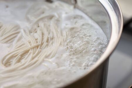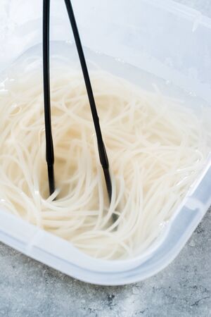 Rice Noodle in Boiling Water Ready to Use. Organic Food.
