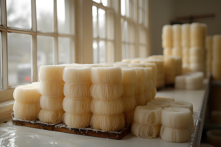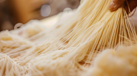 A detailed close-up capturing the texture and quality of hand-pulled noodles, emphasizing the craftsmanship of noodle making.