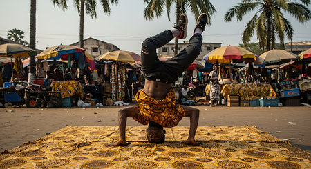 a breakdancer performing in a bustling city square