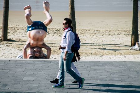 Tel Aviv Israel December 31, 2019 View of unidentified people walking on Herbert Samuel Promenade in Tel Aviv in the afternoon