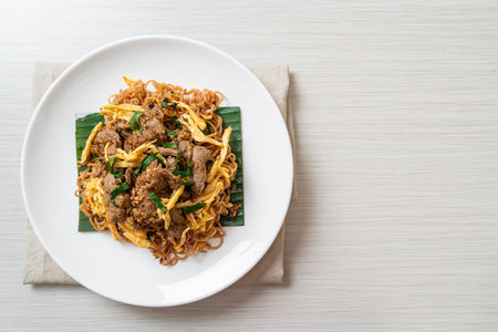 stir-fried instant noodle with pork and egg