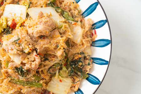 Stir-Fried Thai Styled Sukiyaki or Stir-fried vermicelli with pork and vegetables in sukiyaki sauce - Asian food style