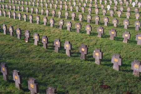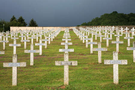 Cemetery outside of the Douaumont ossuary near Verdun France. Memorial of the soldiers who died on the battlefield during the Battle of Verdun in World War I