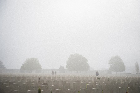 Graves in the American Cemetery in a foggy misty morning