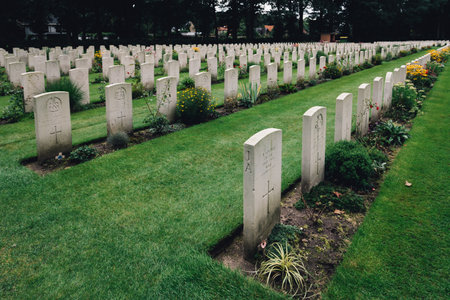 Oosterbeek, Netherlands - August 09, 2016: Airborne War Cemetery. It is a Commonwealth War Graves Commission cemetery for the soldiers killed in the battle of Arnhem.