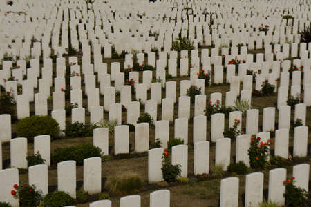 PASSENDAELE, BELGIUM - Aug 16, 2018: Ypres, Passchendaele, Belgium 08/2018: graves of Tyne Cot military cemetery.