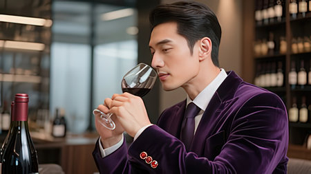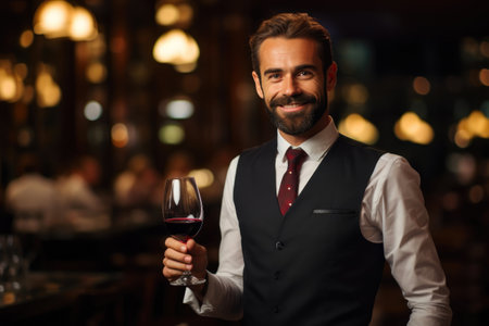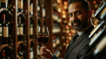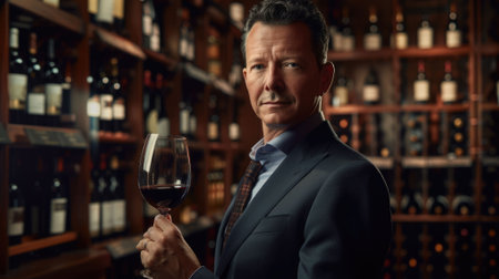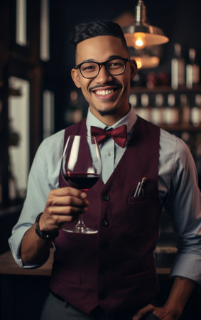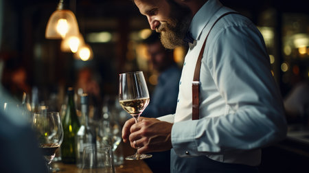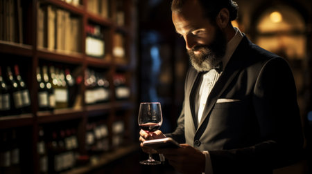 Sommeliers Hold Glass, Red Wine Tasting, Degustation Card, Male Sommeliers Drinks Wine, Restaurant Expert, Generative AI Illustration