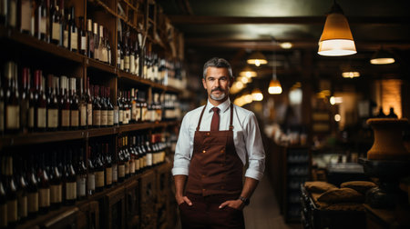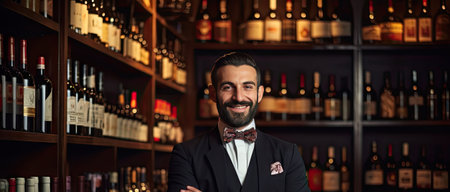 Bartender at Wine Cellar, Many Bottles with Alcohol Drinks, Generative AI Illustration