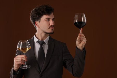 happy successful male winemaker is tasting a flavor and checking red wine quality