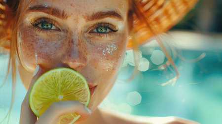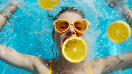 sunlit pool with floating tom collins garnishes, created with generative ai