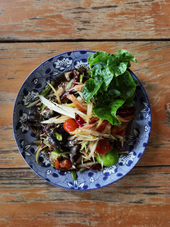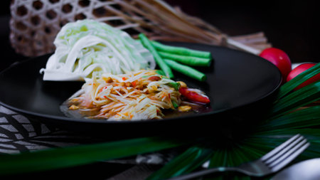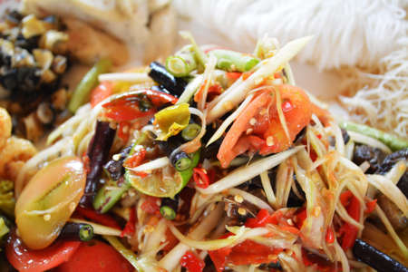 Thai spicy papaya salad serve with vegetables