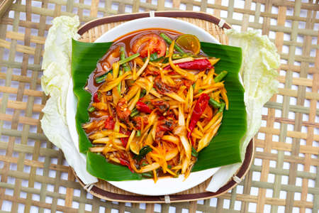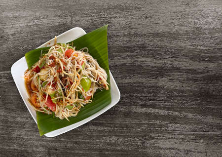 Spicy green papaya salad serve, stock photo