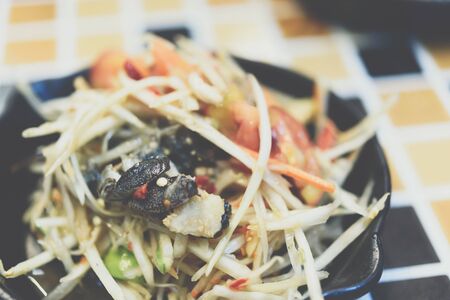 Som Tam is Thai delicious taste hot and spicy papaya salad with crab