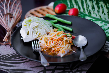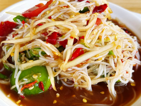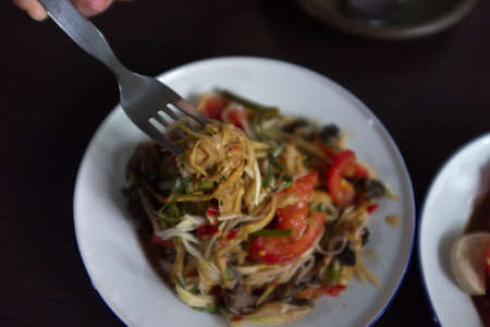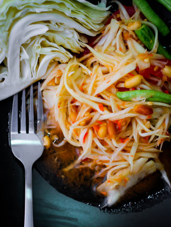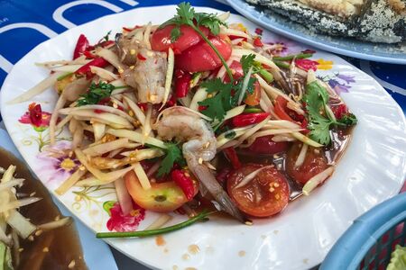 Green papaya salad Thai cuisine spicy delicious.