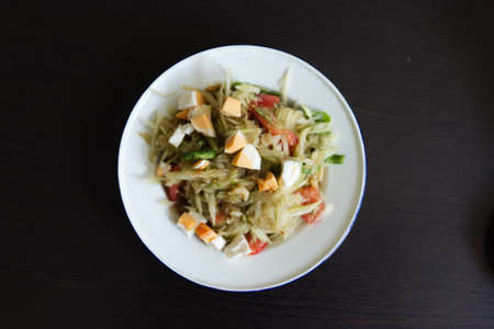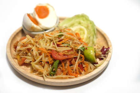 Papaya salad with salted egg. Famous Thai food.