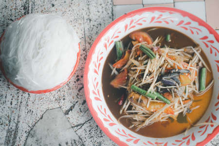 Somtum, papaya salad, Thai Asia spicy food is popular.