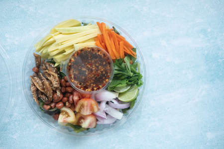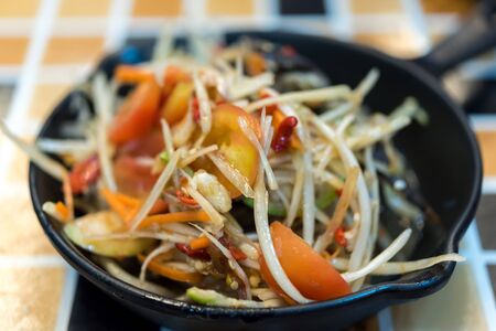 Close up Somtum is famous Thai food, spicy salad good for diet