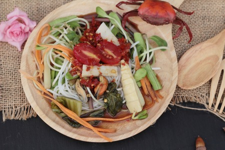 Green papaya salad with crab Thai food, cpicy salad herbs