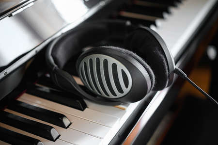 Headphone lying on a digital piano