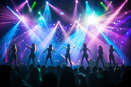 Vibrant Stage Performance with Silhouetted Dancers Creating a Captivating Nightlife Spectacle