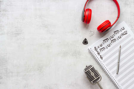 Musical flat lay background, music creation concept.