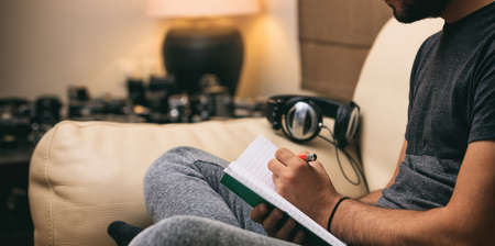 Cropped image of musician writing a new song