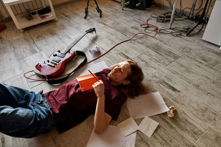 Pensive male musician thinking about new song