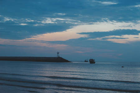 Chonburi Thailand - January 23, 2018; Beautiful sunrise, Thai Fishing boat is out fishing. Fishermen is a career that has been popular in the seaside city of Thailand.