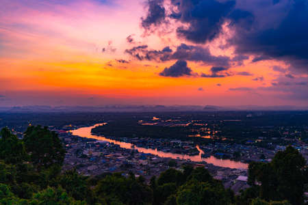 Fisherman Village. Pak Nam Chumphon. View from Khao (Hill) Matsee Viewpoint in Chumphon province, Thailand at sunset time