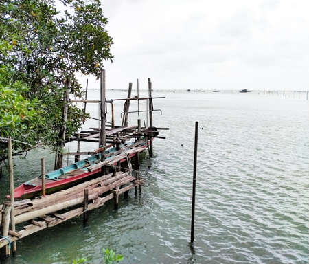 Chonlacharawithee Bridge sea at low tide in Chonburi, Thailand