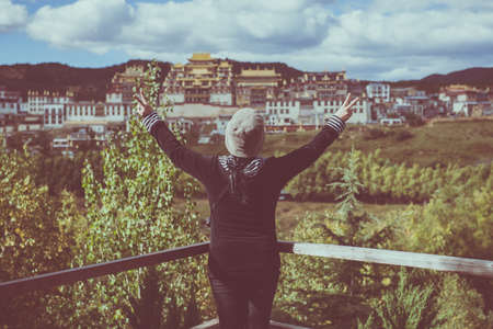 Yunnan,China - April 16,2017 : Songzanlin Temple is the largest Tibetan Buddhism monastery in Yunnan Province.It is called the Little Potala Palace or Ganden Sumtseling Monastery.