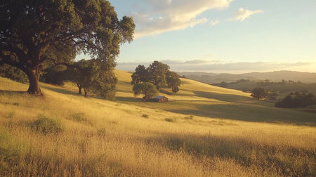 Artistic digital illustration in warm golden palette with soft diffused sunlight, evoking serene abundance and seasonal tranquility. Ideal for wine industry branding, agricultural marketing, fall promotions, and hospitality visuals. Versatile for advertising backgrounds, packaging designs, websites, and editorial content targeting beverage and travel sectors. . AI-generated digital illustration. AI-generated illustration.