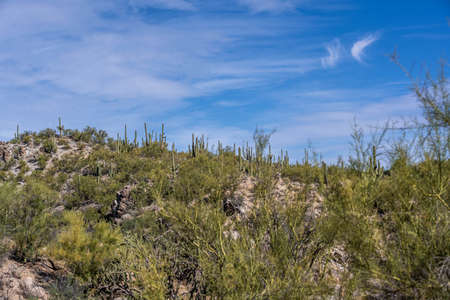 Stubby Cactus Plants Dot the Hillside in saguaro National Park along the Gould Mine Trail
