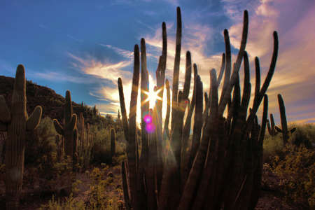 Sunset over Saguaro Cactuses in the Sonoran Desert