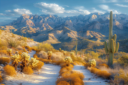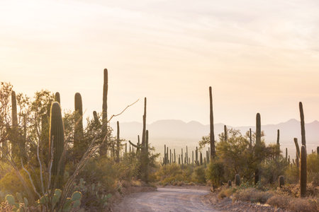Sandy Trail Through Cacti in the Tucson Mountain District in arizona